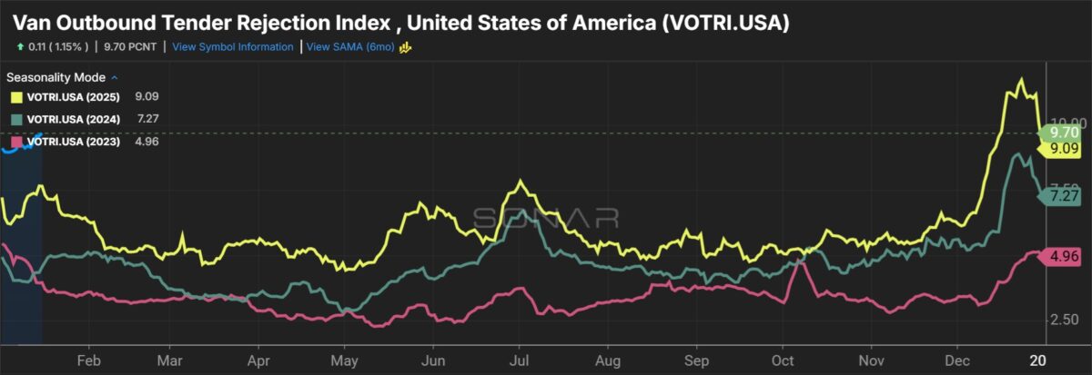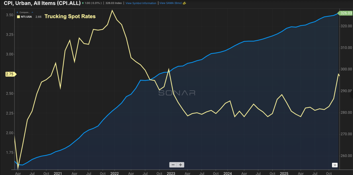 - Spot rates 25% behind inflation: A capacity crunch could change thatby Craig Fuller, CEO at FreightWaves on January 17, 2026 at 7:58 pm
